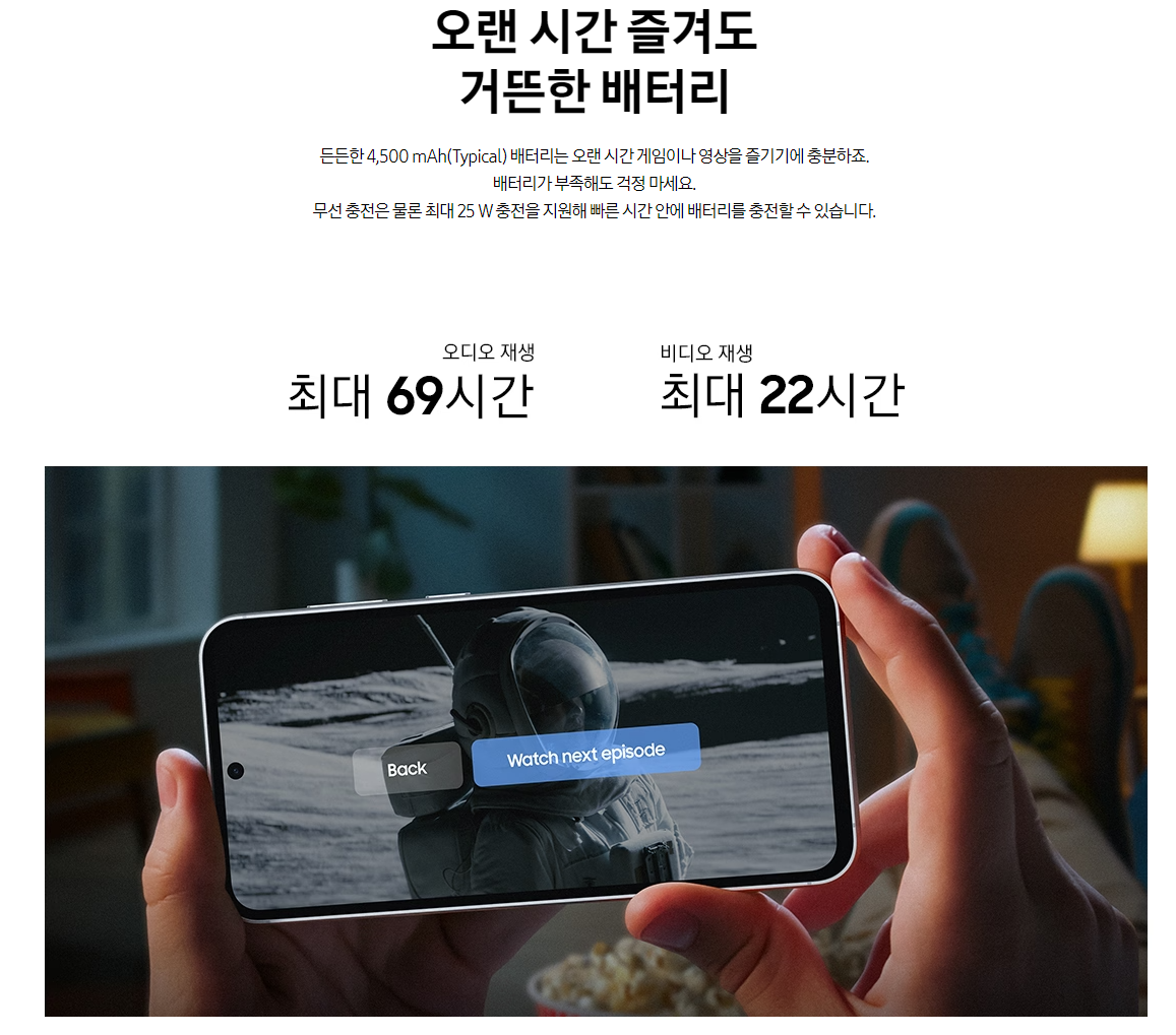 - 충전 지원: 최대 25W 유선 충전 및 15W 무선 충전을 지원하여 빠르고 편리한 충전이 가능합니다.