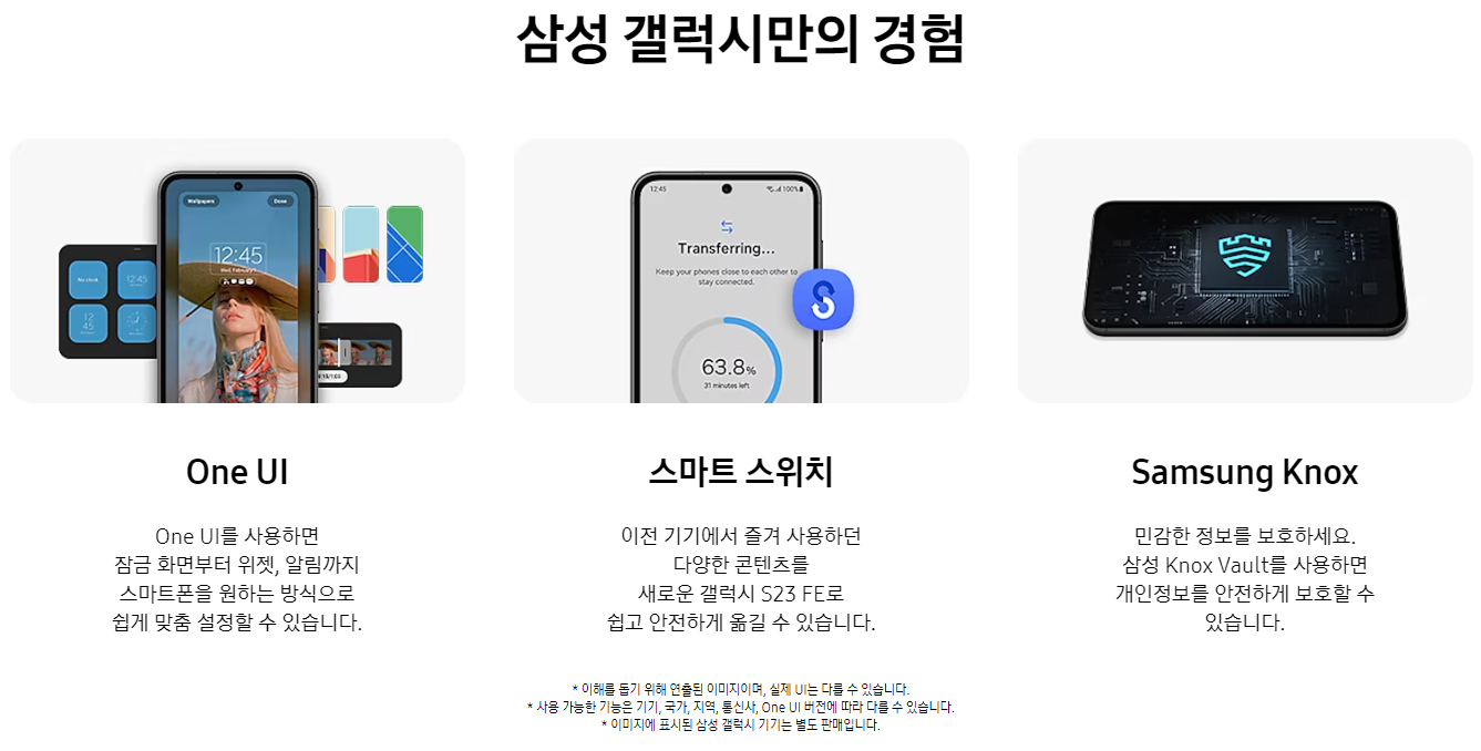 - 무게: 209g으로 S23 FE는 S23 및 S23+보다 무거워, 가벼운 기기를 선호하는 사용자에게 고려할 사항일 수 있습니다.