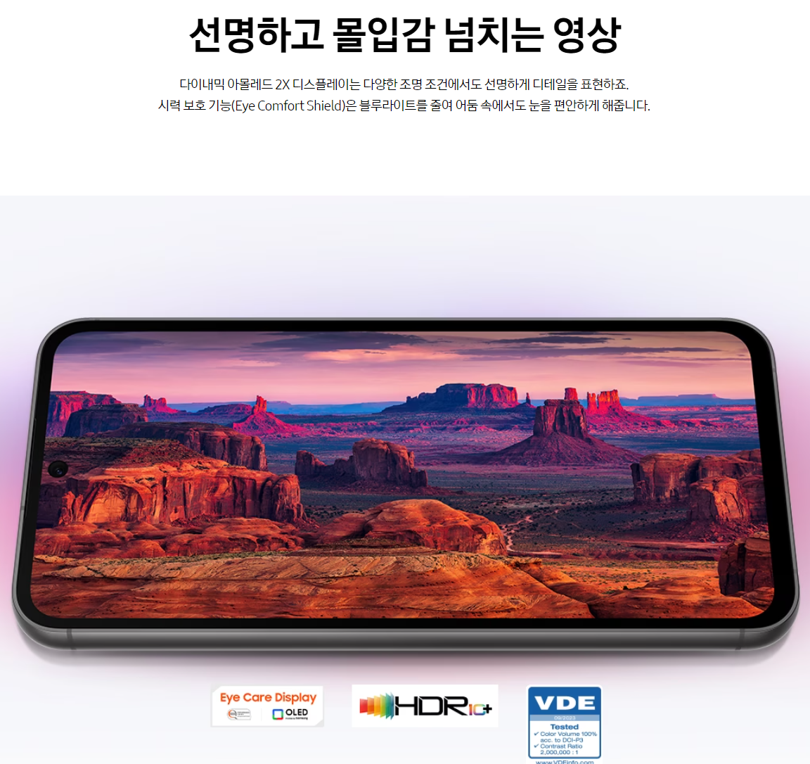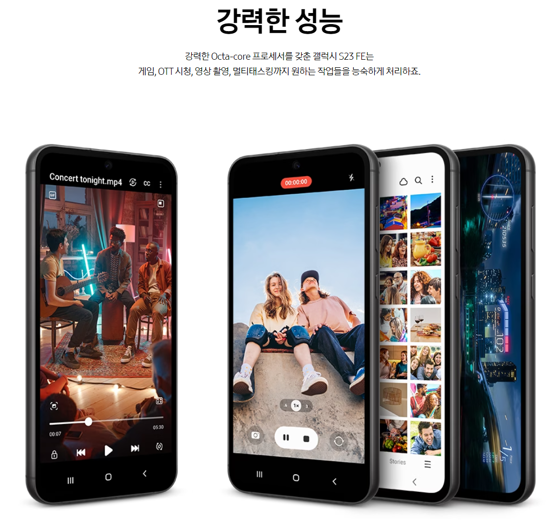 - HDR 지원: 갤럭시 S23 FE는 슈퍼 고명암비(HDR) 기능을 포함하여 시각적 경험을 향상합니다.