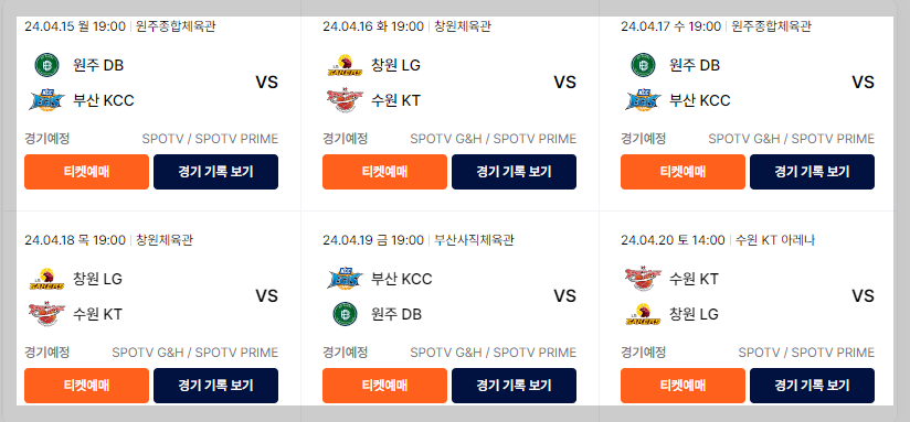 - 대진: 원주 DB vs 부산 KCC, 창원 LG vs 수원 KT