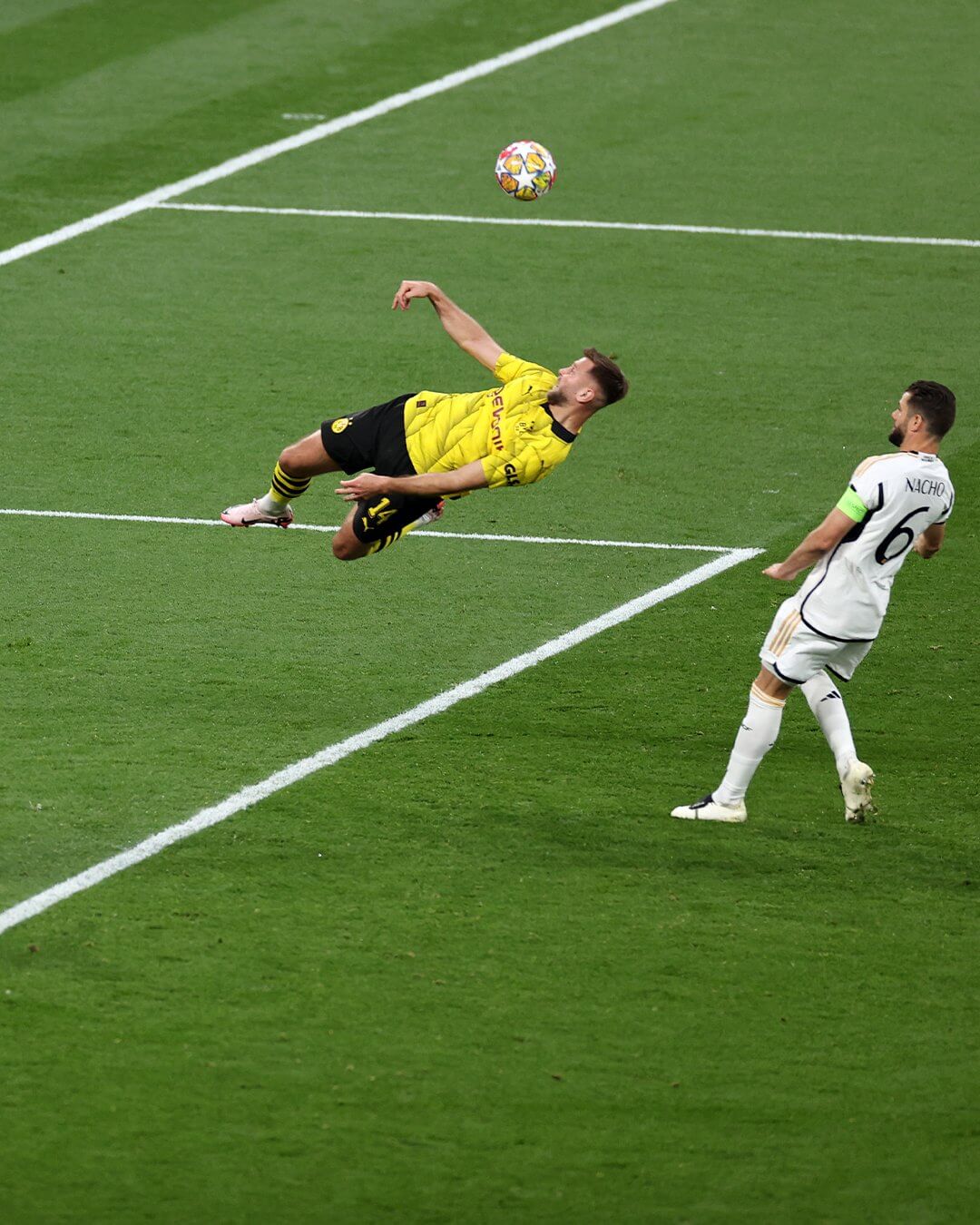 - 후반 12분: 다니엘 카르바할의 발리슛이 도르트문트 수비수에게 막혔습니다.