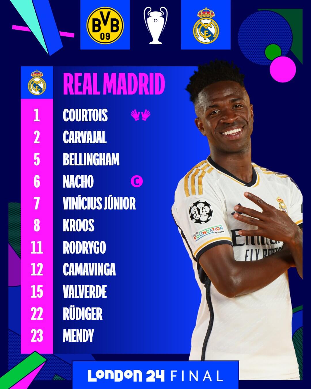 - 후반 38분: 도르트문트의 패스 실수를 주드 벨링엄이 가로채 비니시우스가 왼발로 마무리하며 2-0 리드를 확정지었습니다.