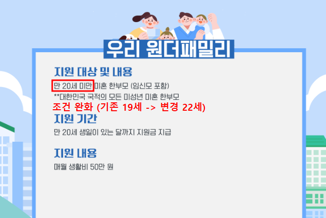 대한민국 여성가족부가 젊은 미혼 한부모를 위한 지원 프로그램을 확대한다고 발표하며 따뜻한 소식을 전했습니다. 이 프로그램은 '우리 원더패밀리'로 알려져 있으며, 기존 19세까지였던 대상 연령을 22세까지 확대했습니다.