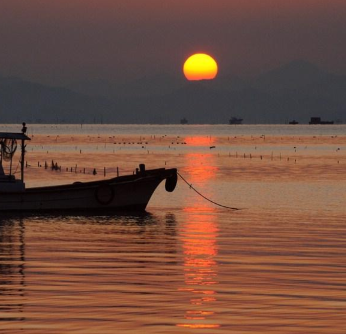 순천만의 서쪽에 위치한 화포 해변은 '꽃이 피는 포구'라는 아름다운 이름을 가진 곳입니다. 이곳의 일출 포인트는 화포 마을에 위치한 해돋이가든 전망대로, 선착장과 바다를 배경으로 봉화산 위로 떠오르는 일출을 감상할 수 있습니다. 동해의 일출만큼 장엄하지는 않지만, 산자락이 붉게 물들면서 떠오르는 장관은 서정적이면서도 평화로운 느낌을 줍니다.