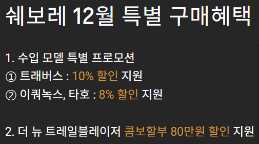 쉐보레 12월 차종별 구매 혜택