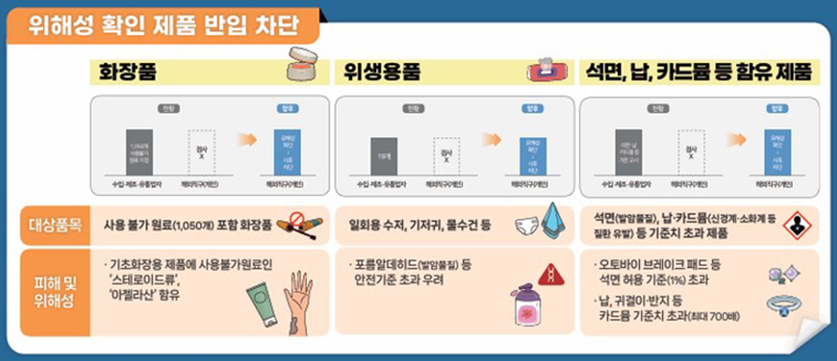 - 규제 설명: 국민안전과 건강을 위해, KC 인증을 받지 않은 제품의 해외 직구를 금지하는 방안이 발표되었습니다. 이르면 오는 6월부터 시행될 예정입니다.