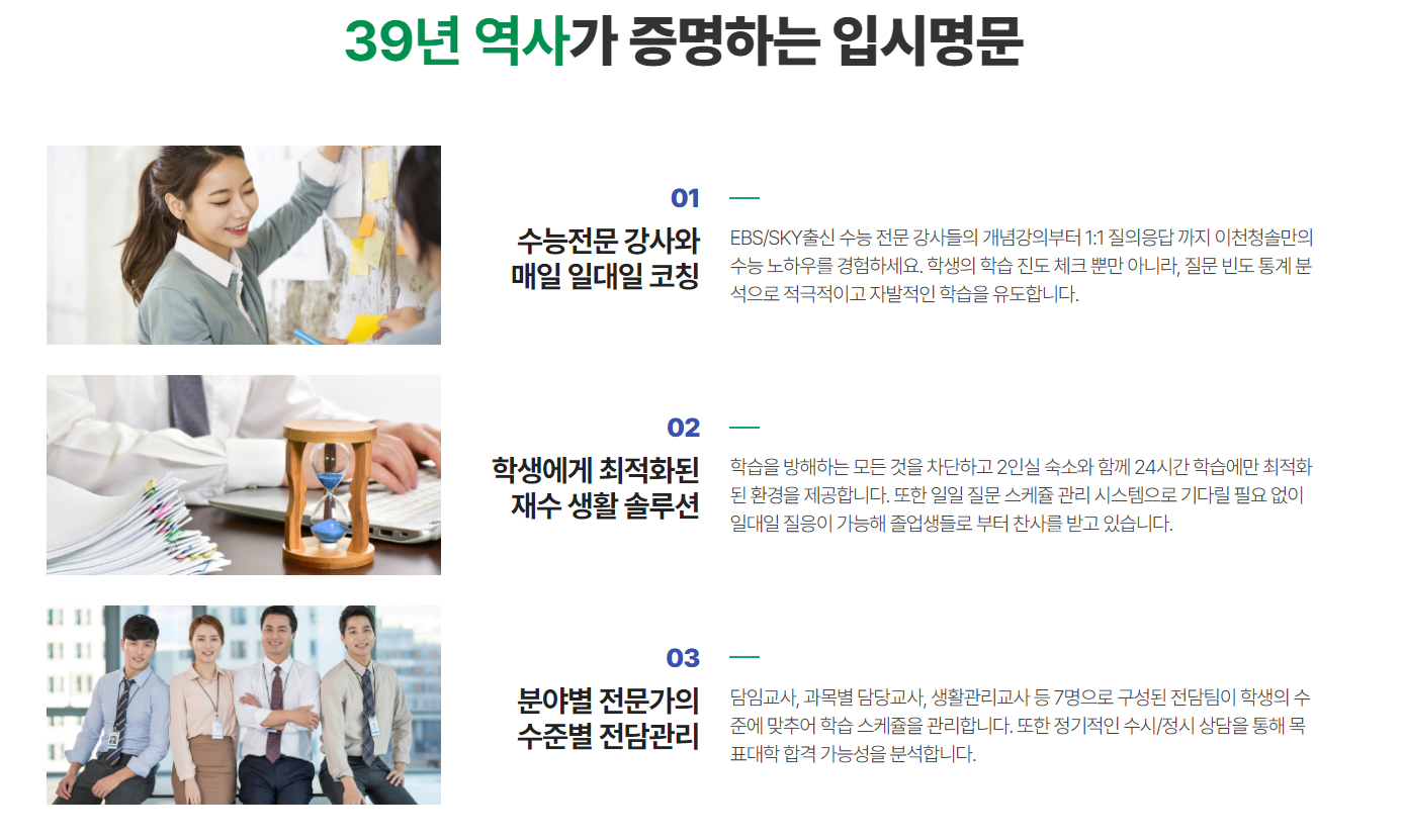 소수정예 책임지도 대치동 1등 강사진의 프리미엄 학습관리