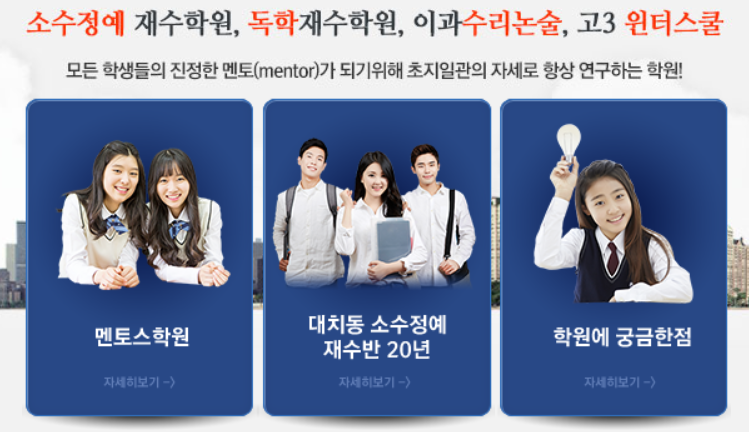 모든 학생들의 진정한 멘토가 되기 위해 초지일관의 자세로 항상 연구하는 학원!