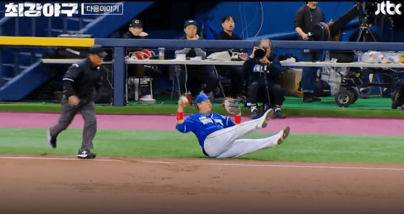 정근우선수와 이대호 선수의 놀라운 수비 장면이 펼쳐집니다. 2분짜리 예고편에서도 마지막 경기에 임하는 레전드들의 각오가 느껴집니다. 하지만 상대는 '대학 올스타팀'만만치 않은 반격의 장면도 선보이네요