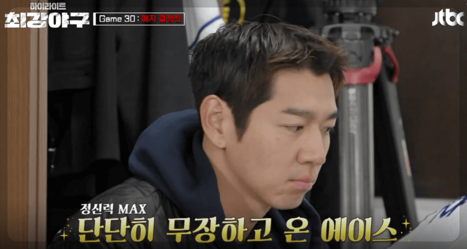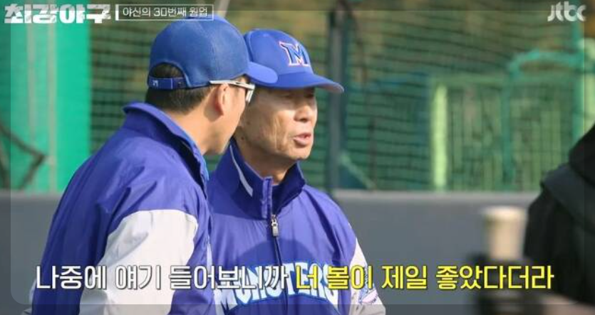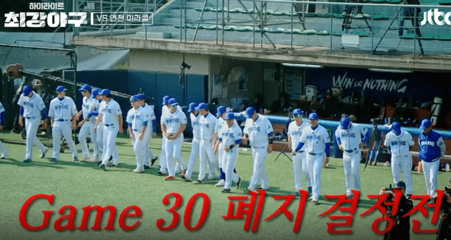 시즌 내내 장발을 유지하던 이대은 선수가 짧은 머리로 등장합니다. 그리고 송승준 선수의 대화장면 "은퇴하고 유니폼 입고 다시 야구할 일은 없을 것 같습니다. 진짜 인생의 마지막인 것 같습니다. 프로그램이 언젠가는 끝나겠지만 지금은 아닌 것 같습니다... " 선수들이 모인 자리에서 송승준 선수가 이번경기의 각오가 석인 대화를 선수 대기실에서 나누는 장면이 인상 깊었습니다.