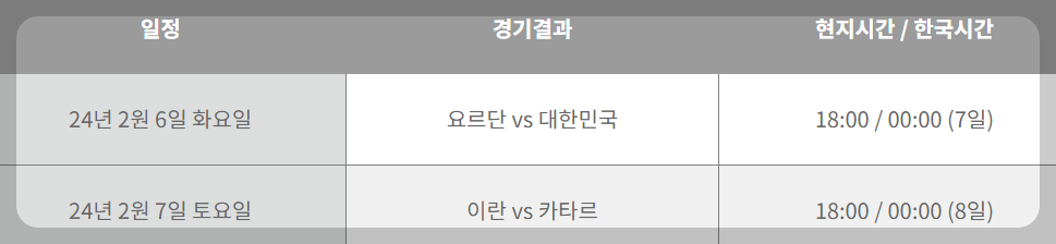 아시안컵 4강 대한민국 대 요르단 경기일정