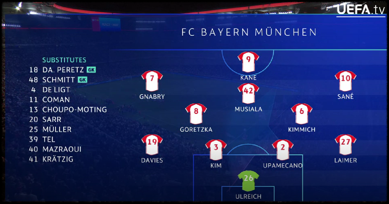 👉 바이에른의 초반 우세: 레로이 사네와 세르주 나브리의 골로 경기를 주도.