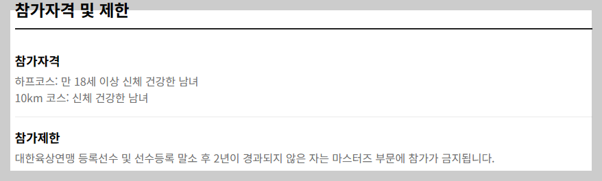 - 하프 마라톤: 18세 이상의 신체 건강한 남녀
