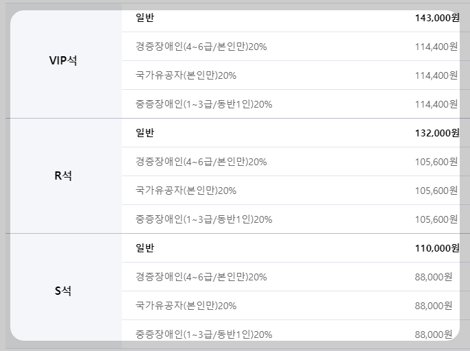 - VIP석: 143,000원