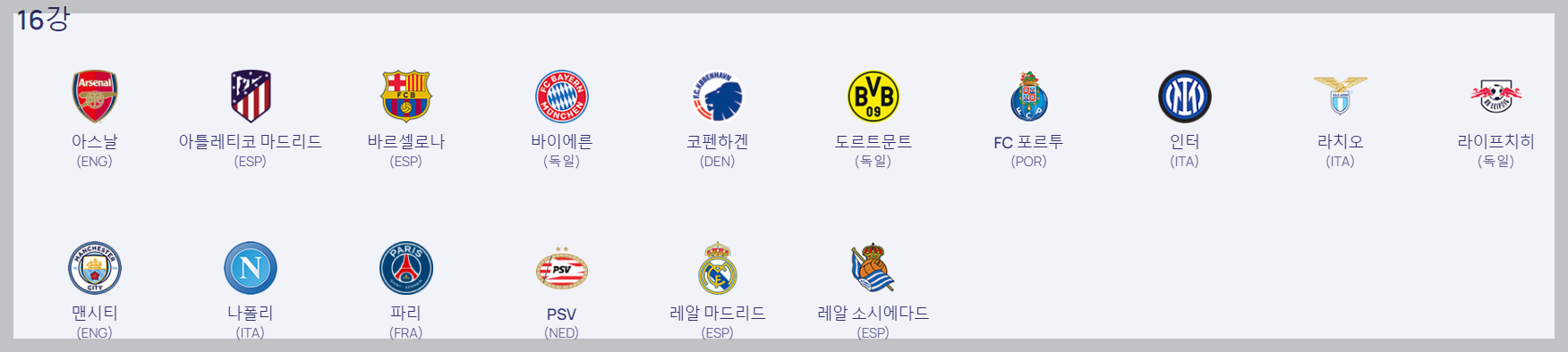 16강에 진출한 팀들